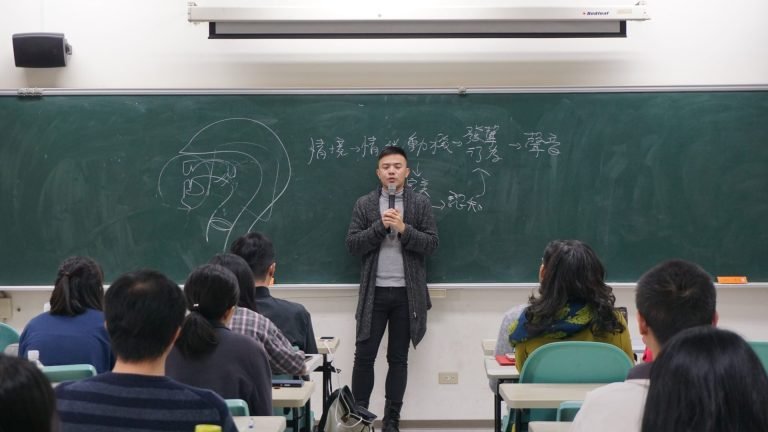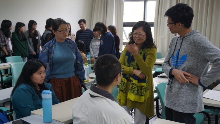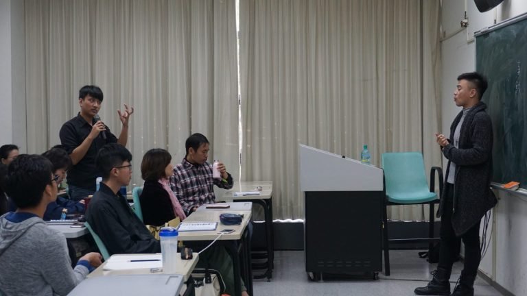 第一堂課的主題是:發聲釋壓與問題改善。首先,陳老師向同學徵詢平時說話與唱歌時所面對的疑問與困難。同學們都積極地提出自己的問題,例如:長時間說話導致喉嚨沙啞、習慣以氣音說話、唱歌有鼻音、共鳴的位置很抽象等。接著,陳老師便針對同學們所提出的問題,一一講解與說明,輔以日常生活的例子,打破我們說話和唱歌的各種迷思,幫助同學解決與避免生活中聲音不適。