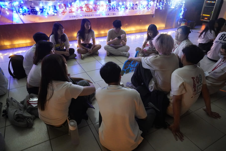 東海大學多元的興趣學習領域含括自治組織、系學會與社團總數超過135個,「學生社團幹部領導知能訓練營」讓社團與系學會混組,在三天的小組時間中培養情感與交流專業,讓每組能夠一起籌備企劃與表演,突破不同社團與系學會之間的藩籬,凝聚情感,成為未來彼此的支持力量,創造合作契機。