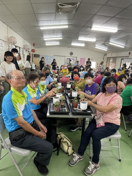 興趣領域學習之外,社團與志工團走出東海大學實踐社會關懷,一起到彰化二林鎮華崙社區發展協會服務銀髮族長輩,專業講師帶領長輩們進行手作植物DIY,咖啡社則端出咖啡讓長輩們享用,志工同學們與長輩近距離互動,傳遞所學知識與關懷,體現服務學習,將愛傳遞出去。